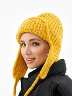 Шапка ушанка вязаная демисезон чепчик с завязками