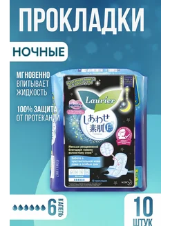 Прокладки женские ночные с крылышками Лорие, 6 капель 10 шт