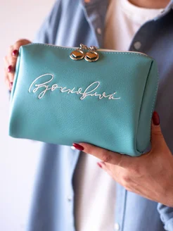 Косметичка маленькая с вышивкой экокожа