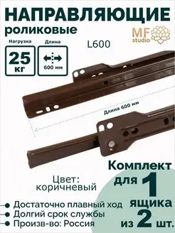 Роликовые направляющие 2 шт нагрузка 25 кг L600 коричневый
