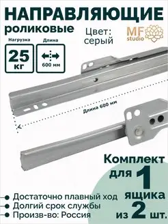 Роликовые направляющие 2 шт нагрузка 25 кг L600 серый