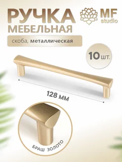 10 штук, Ручки мебельные металлические скоба 128 мм золото