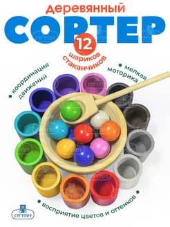 Сортер деревянный шарики и стаканчики развивающий для детей