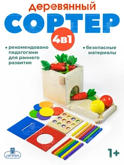 Сортер деревянный развивающий для детей Волшебный куб 4в1
