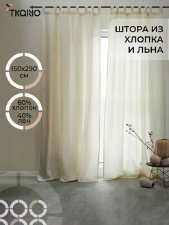 Штора 150х290 см из хлопка и льна длинная для гостиной