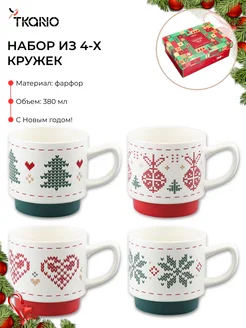 Новогодняя кружка 380 мл Knitted tale для чая, 4 шт