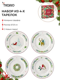Тарелка новогодняя 23 см Nordic winter для вторых блюд 4 шт