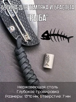 Темлячная бусина из нержавеющей стали с гравировкой Нож