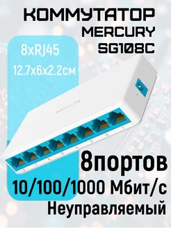Коммутатор Mercury SG108C неуправляемый, 8xRJ45 1000Мбит с