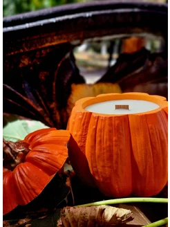 Свеча ароматическая "Тыква" в гипсовом подсвечнике