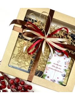 Подарочный новогодний набор кофе, чая и шоколада с орехами