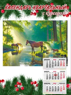Календарь квартальный трехблочный 2026 в офис год лошади