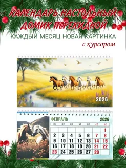 Календарь настольный 2026 домик перекидной на гребне лошадь