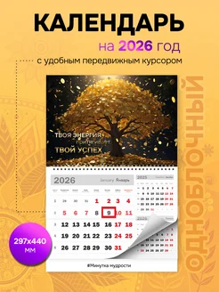 Календарь настенный моно с курсором на 2026 год, одноблочный
