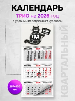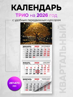 Календарь настенный трехблочный 2026 квартальный отрывной