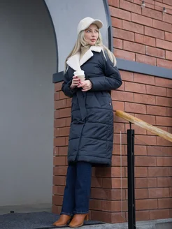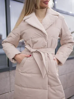 пальто стеганое с эко мехом