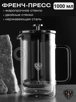 Френч-пресс 1000 мл, чайник заварочный стекло для чая и кофе