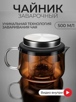 Чайник заварочный стеклянный 500 мл с фильтром ситечком