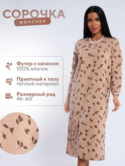 Теплая ночная сорочка с длинным рукавом с начесом