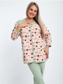 Пижама теплая со штанами и рубашкой хлопок больших размеров