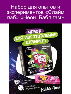 Набор для опытов и экспериментов Слайм лаб Неон. Бабл гам