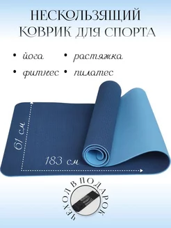 Спортивный коврик для йоги и фитнеса нескользящий с чехлом
