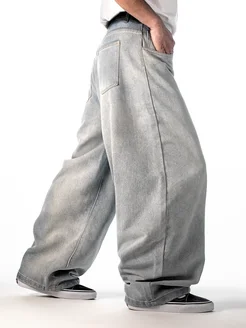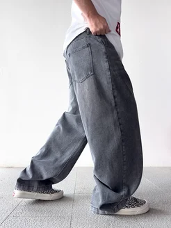 Джинсы багги широкие серые с потертостями