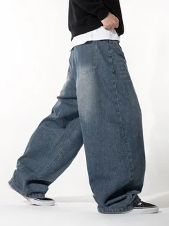 Джинсы багги широкие синие с потертостями