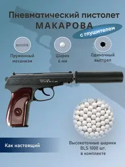 Пневматический пистолет Макарова, глушитель, шарики 1000шт
