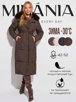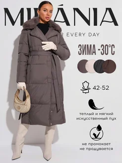 Пальто пуховик с мехом куртка зимняя длинная