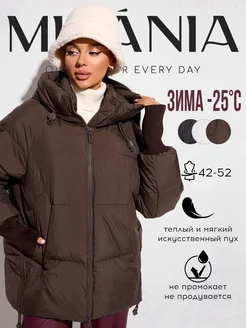 Пуховик зимний короткий куртка оверсайз с капюшоном