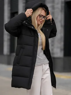Куртка пуховик зимний длинный с капюшоном оверсайз