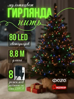 Гирлянда нить rgb разноцветная 8.8м декор на елку от сети