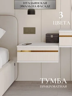 Тумба прикроватная подвесная с фасадом из эмали с латунью