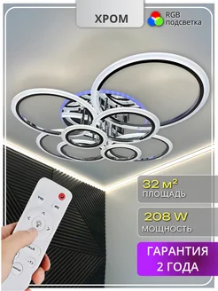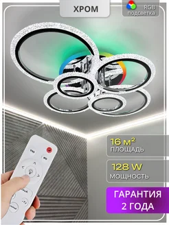 Люстра потолочная светодиодная хром RGB с пультом на кухню