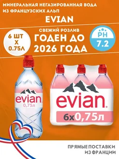 Вода минеральная Эвиан 6 шт по 0,75л спортивная негаз