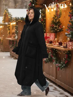 Дубленка еврозима с капюшоном. Демисезонное пальто длинное