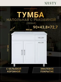 Тумба с раковиной Купер - 90 с бельевой корзиной, левая