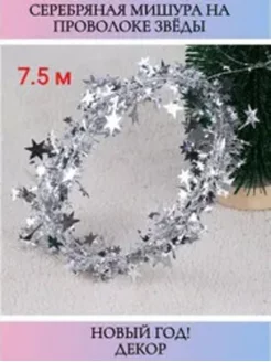 Мишура на проволоке растягивающаяся 7.5 м звездочки серебро