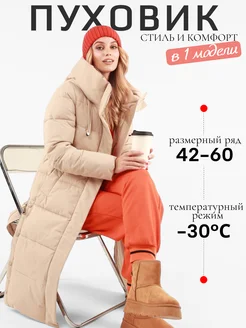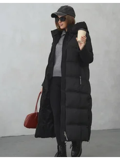 Пуховик зимний длинный оверсайз с капюшоном стеганый