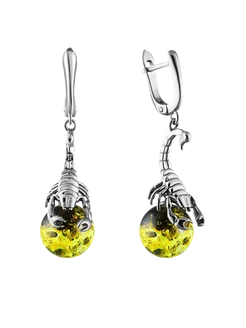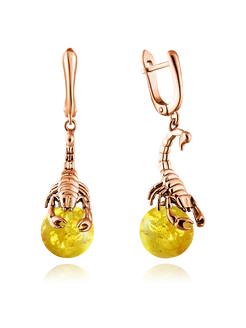 Серьги серебряные позолоченные с янтарем. Скорпионы