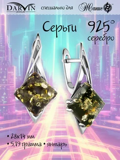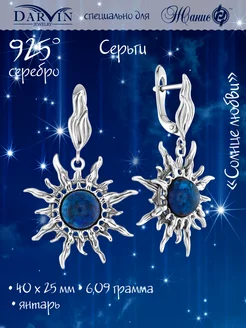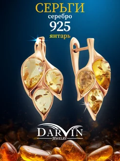 Серьги серебро позолоченные с натуральным янтарем необычные