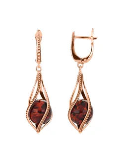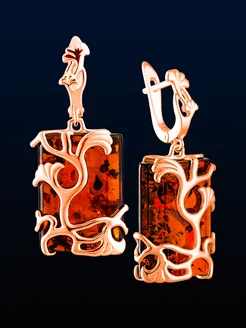 Серьги серебряные позолоченные с янтарем. Янтарные кораллы
