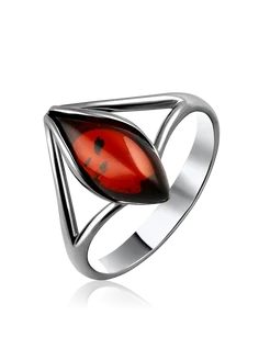 Кольцо серебряное позолота янтарное. Кленовый листик