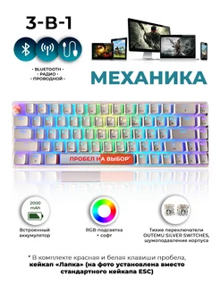 Беспроводная механическая игровая клавиатура 3в1 + подарок