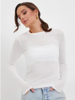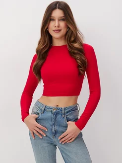 Лонгслив укороченный облегающий с длинным рукавом хлопок
