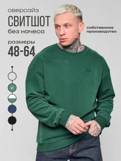 Свитшот ОВЕРСАЙЗ зеленый без начеса с вышивкой