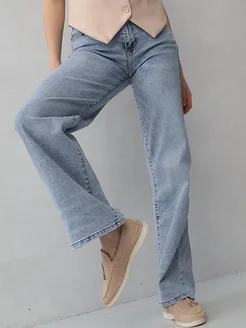 Джинсы широкие трубы с высокой посадкой