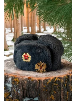 Шапка-ушанка, кадетская, черного цвета с кокардкой