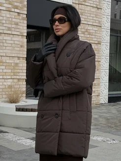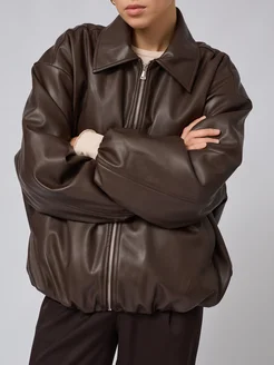 Куртка кожаная утепленная бомбер шоколадный оверсайз